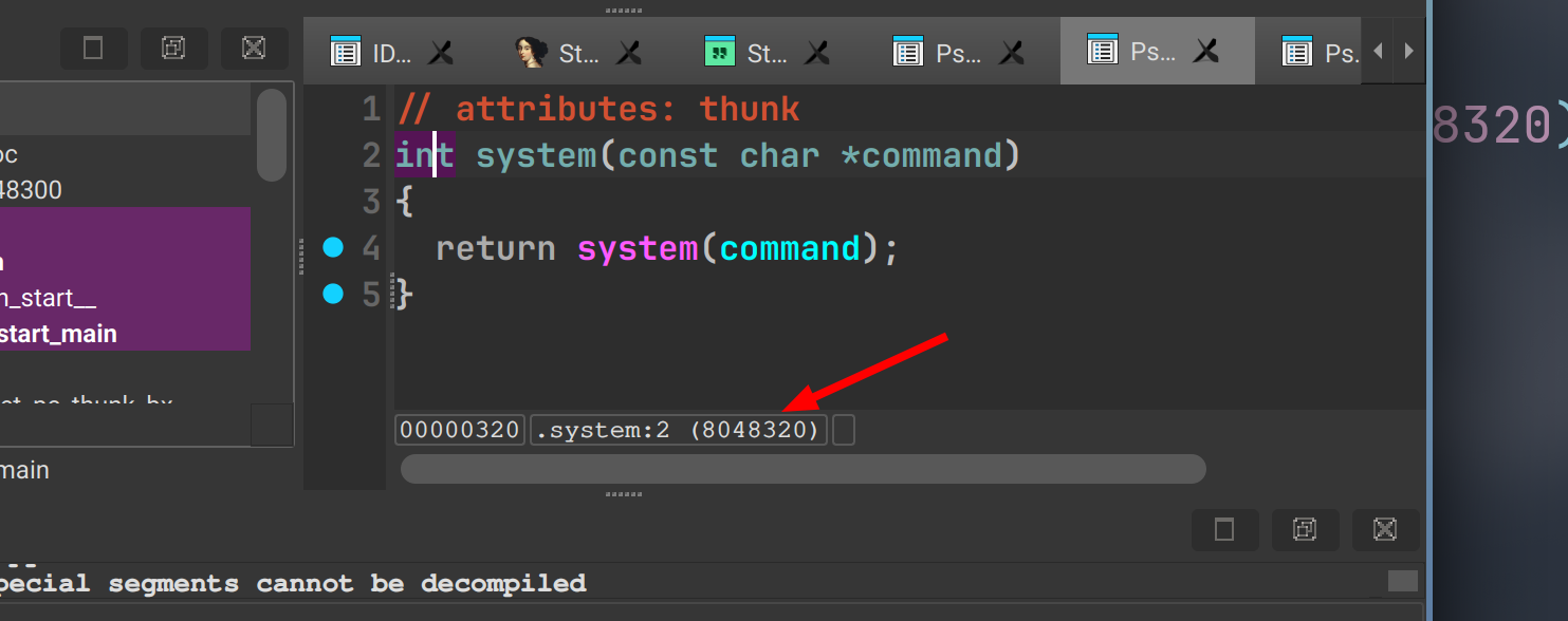 这里 0x8048320 是 system 函数的地址,x804A024 是 /bin/sh 字符串的地址。