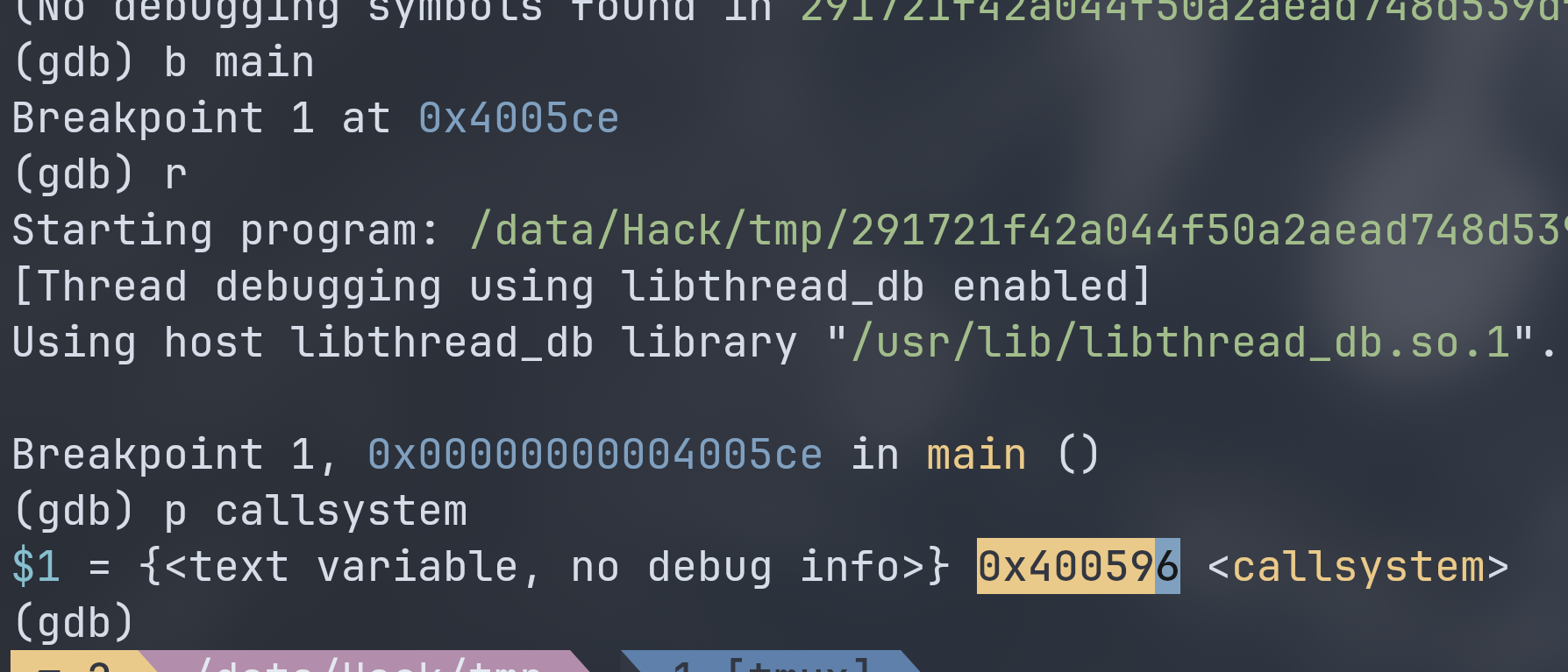 这边构造攻击载荷,首先 0x80 个 A 字符塞满字符串,然后用 0x8 个字符覆盖与返回地址间的 8 个字节空间。用 p64() 函数将 callsystem 地址转换为小短序的字节串,这个操作能够覆盖原本函数栈的返回地址,让我们跳到目标函数地址内。