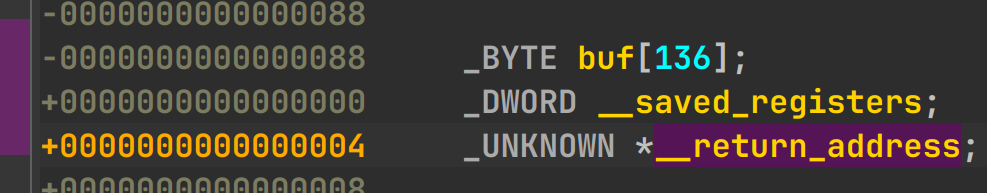 这里 buf 只有 0x88 ,而可以输入 0x100 数据。