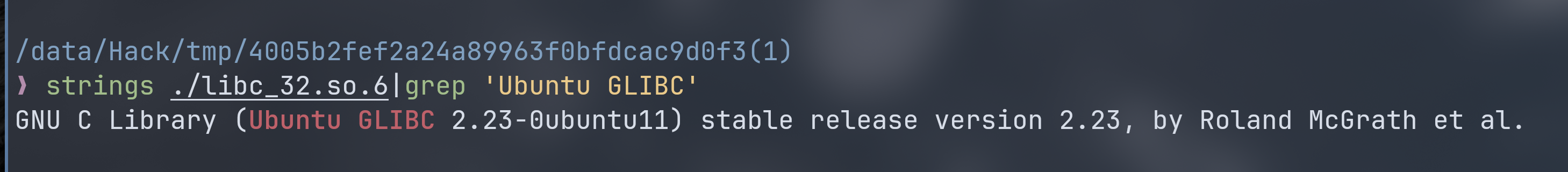 首先使用 strings 搜索 glibc 有关版本号的字符段: