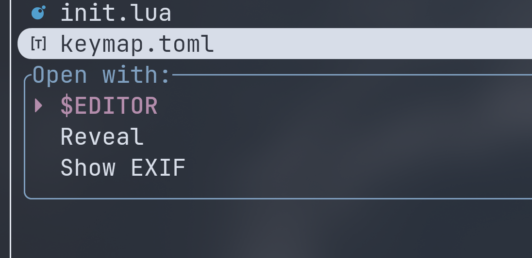 yazi 的打开文件根据 FreeDesktop 的文件关联选择相应的程序打开文件。